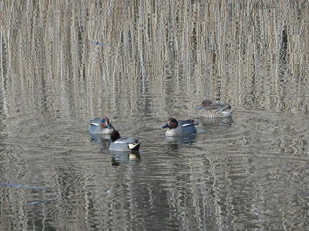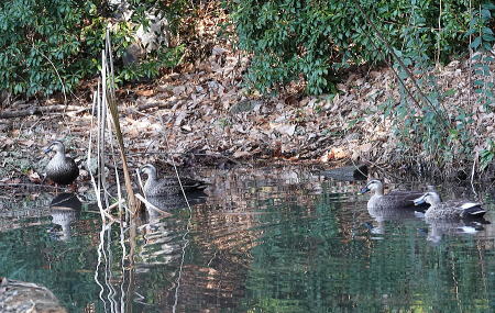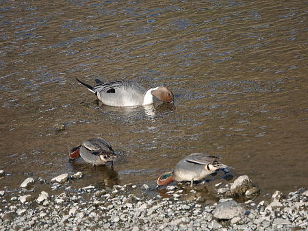 | コガモ、オナガガモ[2月26日] 一緒に採餌しています | オナガガモ[2月26日] 引地川のこの辺りでは長らく見ていません | |