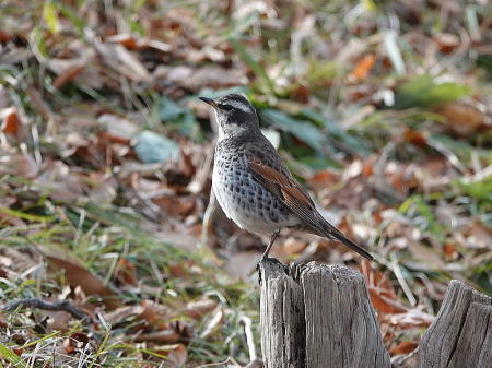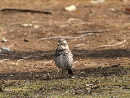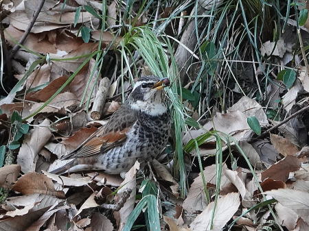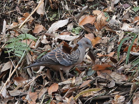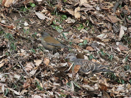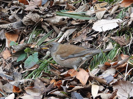 | シロハラ[2月3日] キジバトとは少し離れた所で枯葉を飛ばしていました | キジバト[2月3日] 枯葉を飛ばして採餌していました | |