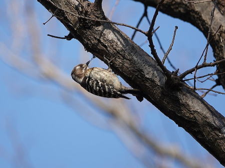 | コゲラ[2月20日] 小さなこぶの中から何かを引っ張り出しました | モズ[2月19日] 複雑な声で鳴いています、そろそろ繁殖シーズンです | |