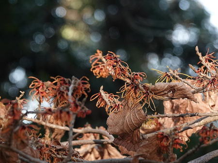 | シナマンサク[2月4日] 枯れているように見えますが花です | マンサク[2月4日] 春の花が咲き始めました | |