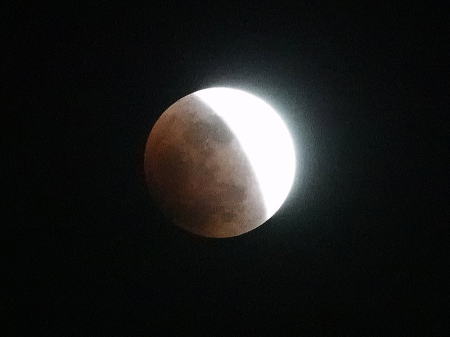 | 皆既月食[1月31日] 月が暗くなったので周りの星が見えてきました、22:11 | 皆既月食[1月31日] 皆既月食寸前です、21:48 | |