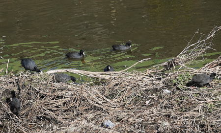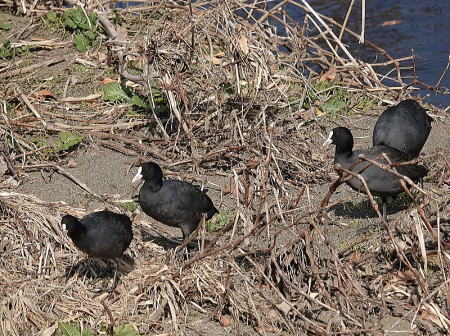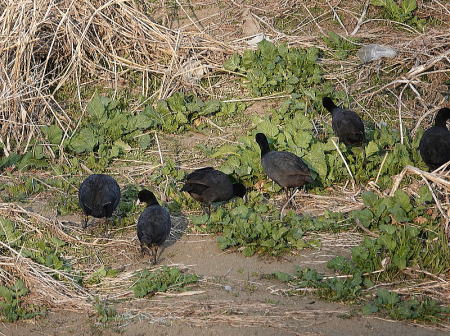 | オオバン[2月4日] 7羽いました | オオバン[2月4日] 草を食べに上がって来ました | |