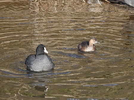 | オオバン、カイツブリ[2月6日] 近くにオオバンがやって来ました | カイツブリ[2月6日] 何度も潜水を繰り返し何やらゲットしたようです | |