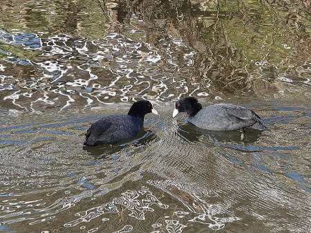 | ユリカモメ[2月6日] 今日は10羽ほどでした | オオバン[2月6日] 呼ばれて左のが来たところです | |