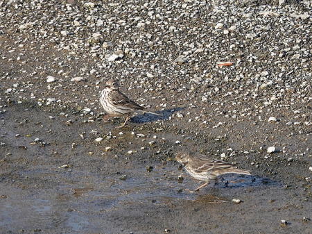 | タヒバリ[2月26日] 3羽来ていました | タヒバリ[2月26日] 田圃ではなかなか見られないのに河原にいました | |
