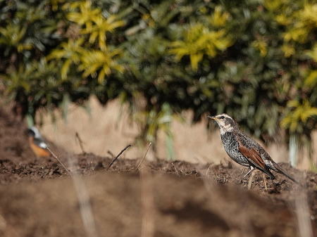 | ジョウビタキ[2月5日] 畑でツグミ、ジョウビタキ♂、モズが採餌していました | ジョウビタキ[2月5日] この辺りで時々見かけます | |