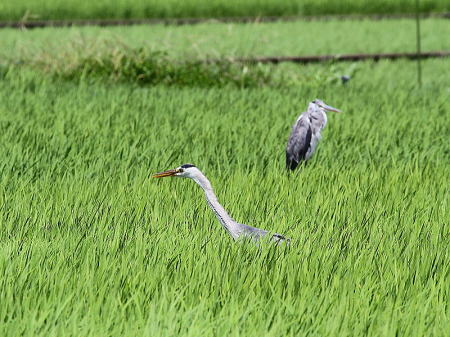 | コチドリ[7月7日] 今年生まれの幼鳥でしょうか、親と一緒にいました。 | アオサギ[7月7日] 親と一緒に若鳥がいました。 | |