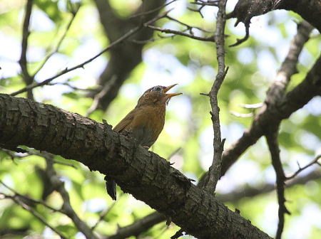 | オナガ[7月1日] サンゴジュの林が好きなのでしょう。 | ガビチョウ[7月1日] 城址公園で鳥の声はここだけでした。 | |