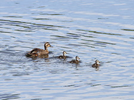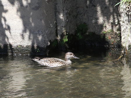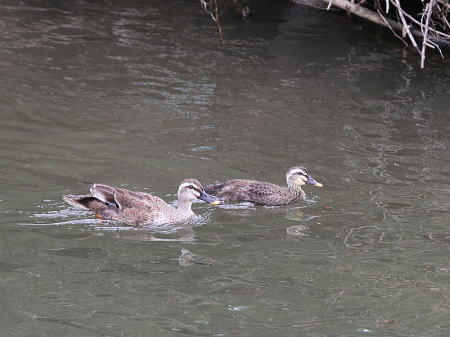 | カルガモ[7月10日] 幼鳥3羽連れがいました。 | カルガモ[7月7日] 大きくなっていますが親子でしょう。 | |