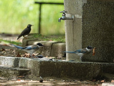 | オナガ[7月3日] 水場で遊んだりしています。 | オナガ[7月3日] 何か面白いことはないかな。 | |