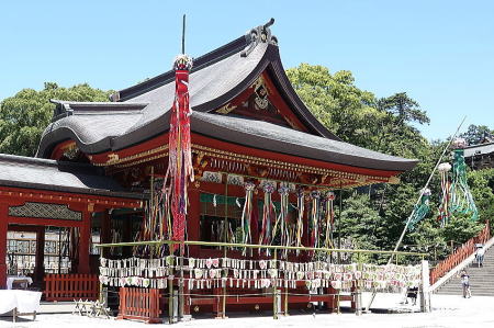 | 鶴岡八幡宮[7月2日] くす玉や吹流しが飾られています。 | 鶴岡八幡宮[7月2日] 1日より7日まで七夕祭りです。 | |