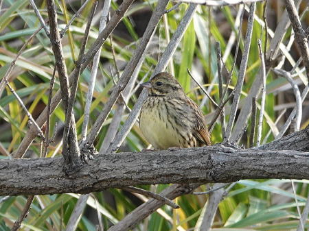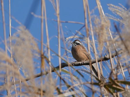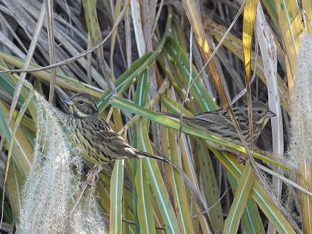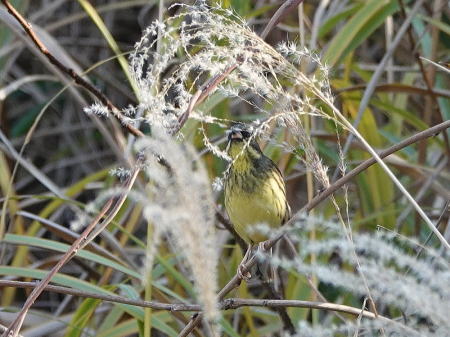 | アオジ[12月20日] ススキの根元に隠れています。 | アオジ[12月20日] ススキの種を食べに出て来ます。 | |