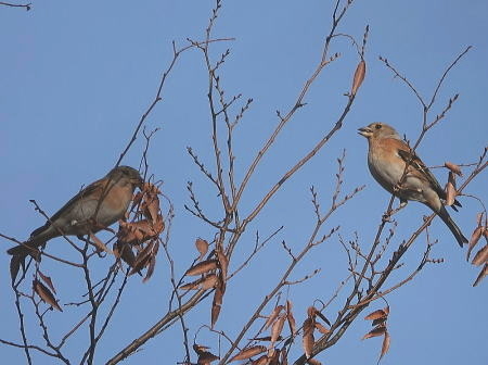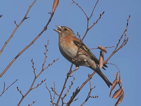 | アトリ[12月21日] 数羽来ていると教えていただきました。来たのは2年ぶりです。 | アトリ[12月21日] ケヤキの実を食べていました。 | |