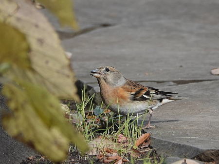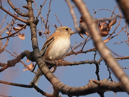 | アトリ[12月27日] そーっと待っていると地面に下りて来ました。 | アトリ[12月27日] 散歩の犬が来て飛んで行ってしまいました。 | |