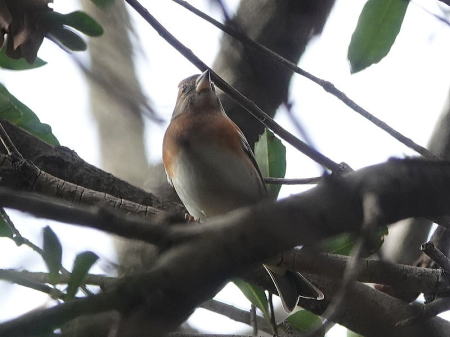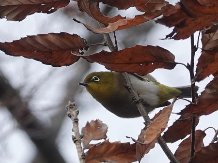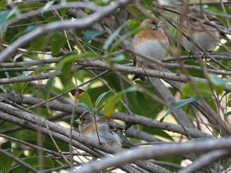| メジロ[12月26日] 数羽の群れで飛んで来ました。 | アトリ[12月26日] 何羽かいますが常緑樹の中ばかりでした。 | |
