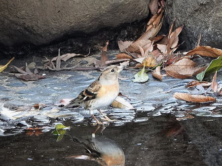 | アトリ[12月27日] 常緑樹の中に十羽近くいたようです。 | アトリ[12月27日] 水飲み場に下りて来ましたが直ぐに戻ってしまいました。 | |