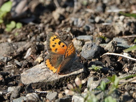 | アトリ[12月21日] 群れが飛び去り1羽だけ残りました。夕陽を浴びて綺麗でした。 | ベニシジミ[12月20日] 暖かさに誘われたのかふわふわ飛んでいました。 | |