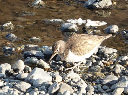 | スズメ[12月25日] もう結構長い間見られています。 | イソシギ[12月25日] 小石の間から何か獲っていました。 | |