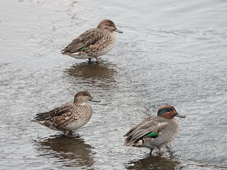 | コガモ[12月16日] ♂が綺麗になってきました。 | ノスリ[12月14日] 木の陰で静かに獲物を狙っている様子でした。 | |