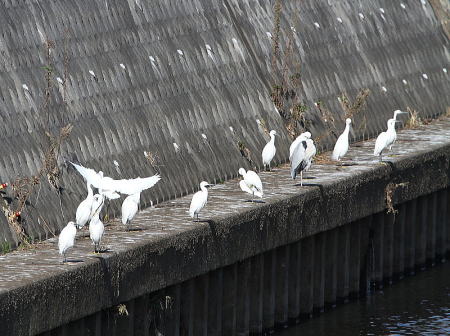 | オオバン[12月1日] 今日は全部で4羽見かけました。 | コサギ、アオサギ[12月1日] ほかに河原にも数羽下りていました。 |