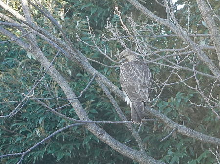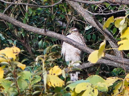 | シメ[12月10日] ハンノキの種を食べているようでした。 | オオタカ[12月10日] 長い間辺りを見回していました。狩りに飛び出しましたが残念ながら木の陰で見えませんでした | |