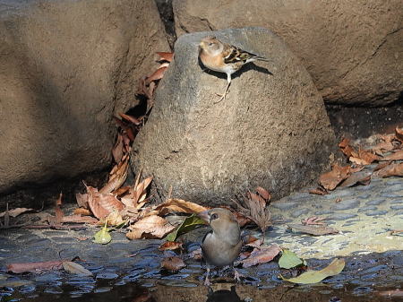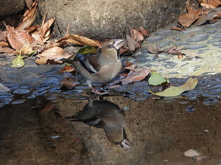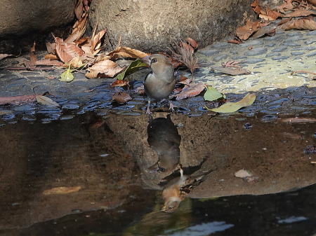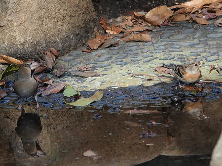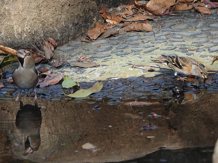 | シメ、アトリ[12月27日] アトリが後ろに来ていました。 | シメ、アトリ[12月27日] アトリも一緒に水を飲み始めました。 | |