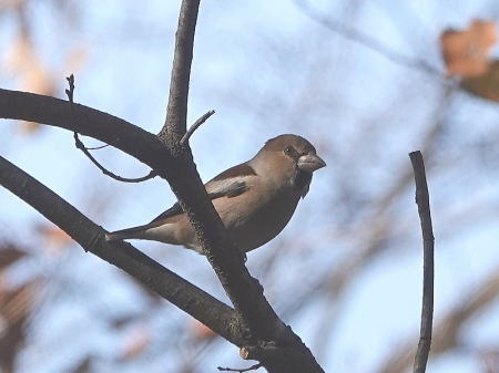 | アオジ[12月28日] 刈り残されたススキの中に居ました。 | シメ[12月28日] 非常に警戒心が強いです。 | |