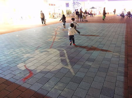 | テラスモールのイルミネーション[12月19日] クリスマスはもう直ぐです。近くをソリが駆け抜けます。 | テラスモールのイルミネーション[12月19日] 20分おきに光のショータイムがあります。 | |