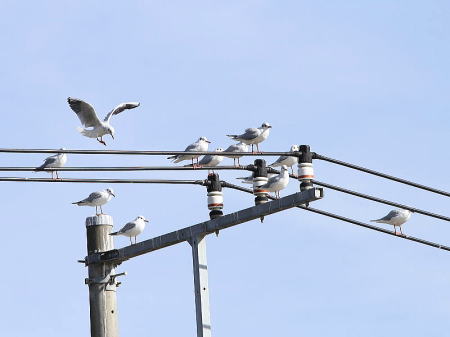 | ユリカモメ[12月1日] 天神橋でも多く見かけるようになりました。 | カワセミ[12月1日] なかなかいい所には止まってくれません。 | |