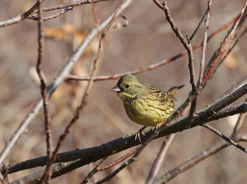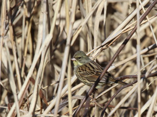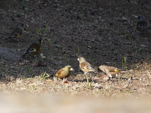 | アオジ[1月19日] 他の冬鳥をなかなか見つけられません。 | カワラヒワ[1月17日] 群れで居るのを見かけるようになりました。 | |