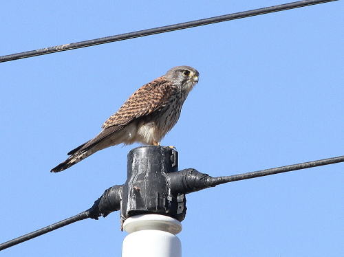 | ジョウビタキ[1月20日] 何故か少ないですね。 | チョウゲンボウ[1月19日] この辺りに止まっていることが多いです。 | |