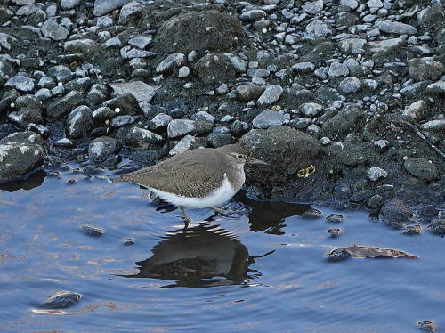 | イソシギ[1月20日] 水際を餌を探しながら歩いている様子でした。 | カワセミ[1月20日] 何度も場所を変えながら餌を狙っていました。 | |