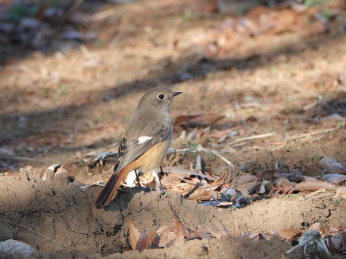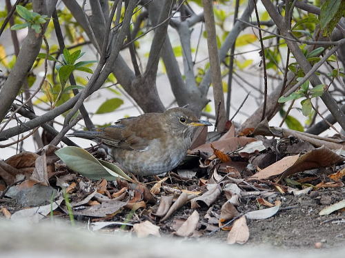 | ジョウビタキ[1月3日] 見かけたのは♀だけでした。 | シロハラ[1月3日] ここの植込みは暗く安心して餌獲りをしていました。 | |
