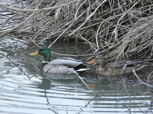| アトリ[1月1日] また水を飲みに下りて来ました。 | マガモ[1月1日] 別の公園にいました。 | |