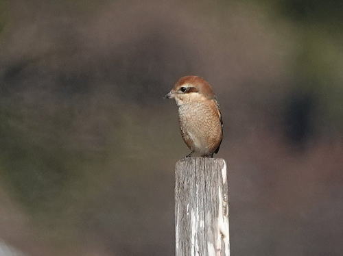 | バン[1月1日] 若鳥のようです。 | モズ[1月1日] 畑の杭の上に止まっています。 | |
