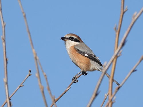 | ジョウビタキ[1月23日] ♀はたまにしか見かけません。 | モズ[1月23日] 同じ方向を見つめていました。 | |