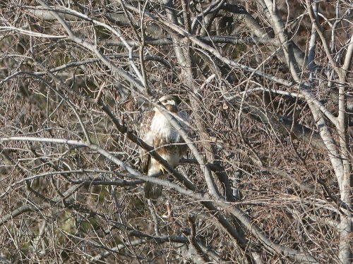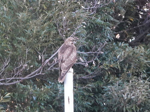 | ジョウビタキ[1月4日] 餌を見つけるのは難しそうでした。 | ノスリ[1月4日] 夕方、久しぶりに見かけました。 | |