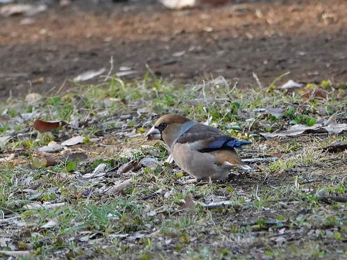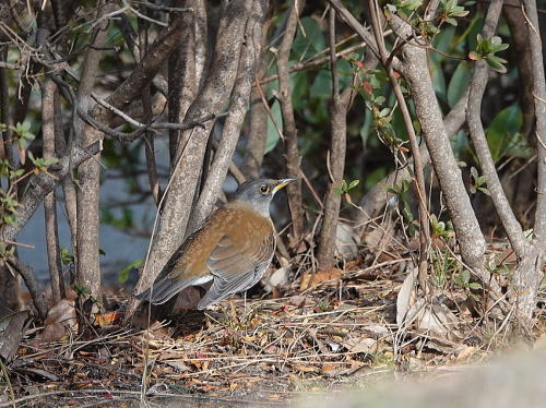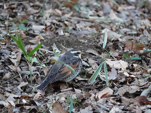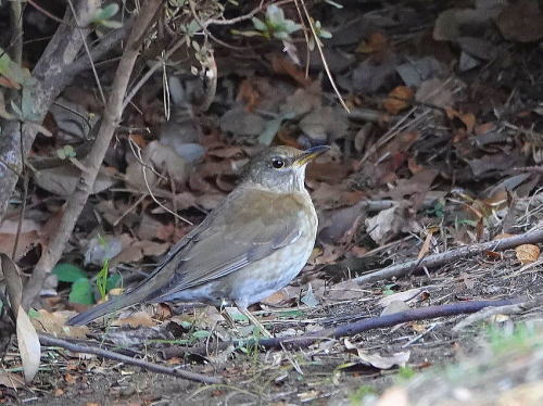 | シメ[1月28日] 1羽だけ辺りを警戒しながら採餌していました。 | シロハラ[1月28日] 気配はありましたがやっと見られました。 | |