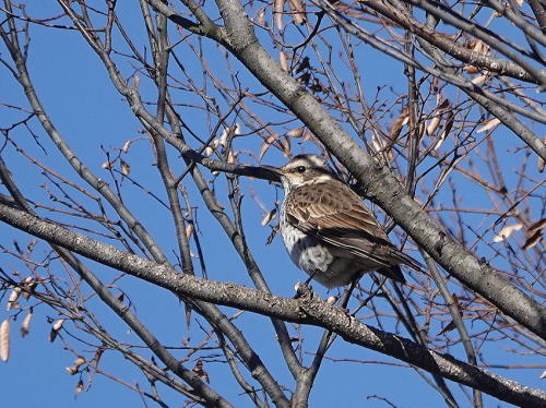 | ホオジロ[1月15日] 木道で餌を獲っていました。 | ツグミ[1月15日] 滅多にしか見かけないです。 | |