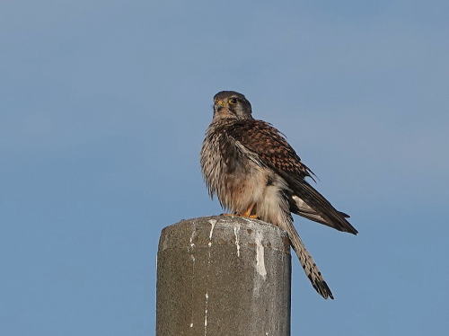 | チョウゲンボウ[2月3日] アー、かいかい(かゆい)。 | チョウゲンボウ[2月3日] 何かを見たのでしょうか、羽を膨らませました。 | |