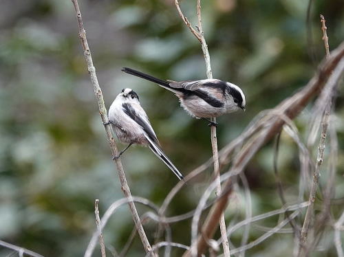 | カワラヒワ[2月15日] 器用にイノコヅチの種を食べています。 | エナガ[2月15日] 数羽でやって来ていつの間にか見えなくなりました。 | |