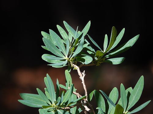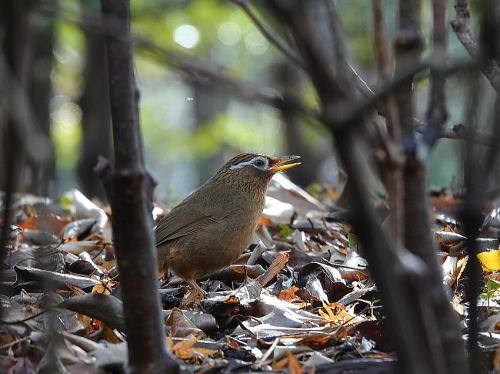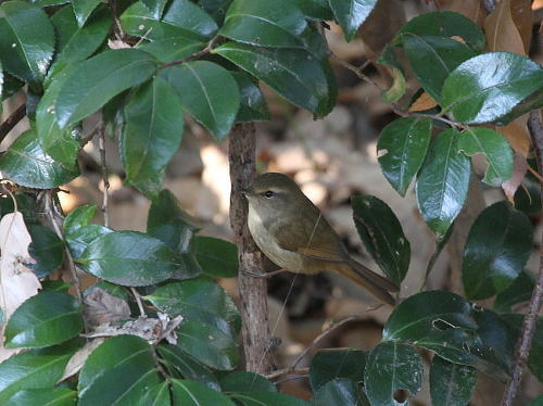 | シロハラ[2月20日] カサカサ音がしないと絶対に見つけられません。 | オニシバリ[2月20日] 葉の付け根に小さな黄色い花が咲いています。 | |