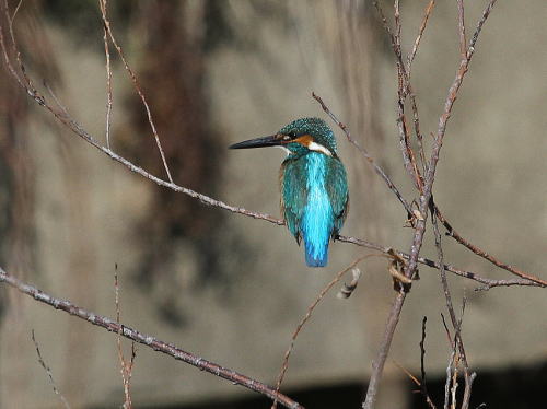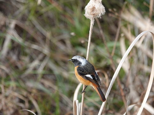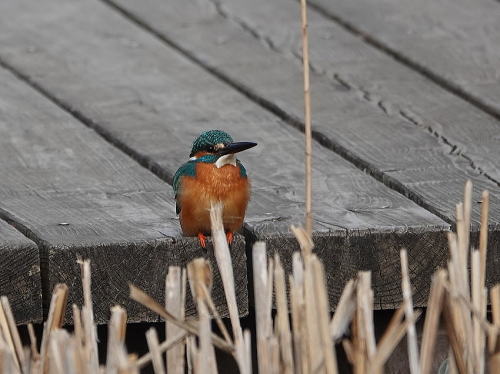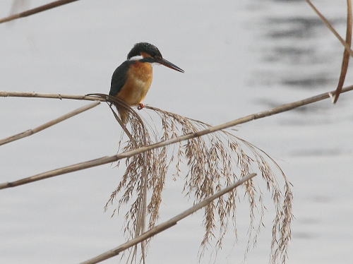 | ジョウビタキ[2月11日] ガマの枯穂に止まりました。 | カワセミ[2月11日] 魚は居そうもない所なのですが。 | |