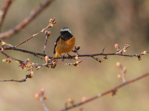 | ジョウビタキ[2月13日] もうすぐ咲きそうな河津桜の枝に止まっていました。 | カワセミ[2月13日] 直ぐ近くにもう1羽、最近よく見かけます。 | |