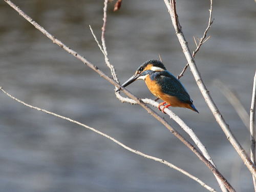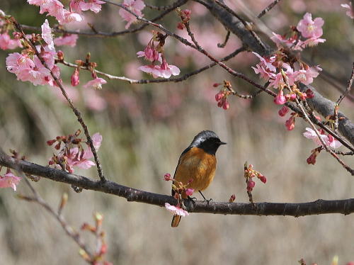 | ジョウビタキ[2月20日] 河津桜はまだ少し先のようです。 | カワセミ[2月20日] 遠くからでも翡翠色ですぐに分かりました。 | |