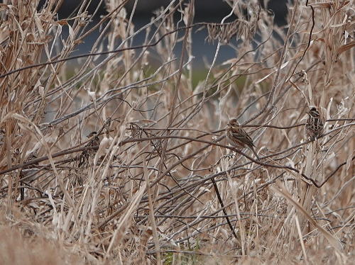 | カシラダカ[2月14日] 暫くぶりに見かけました。 | カシラダカ[2月14日] 20羽位いました。分かり辛いですがここに4羽写っています。 | |