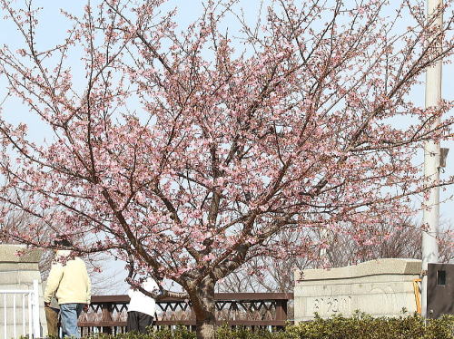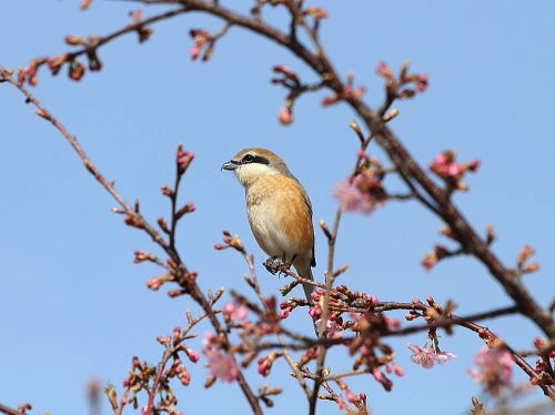 | 河津桜[2月24日] 未だ1〜3分咲きくらいです。この暖かさが続けば満開も近いでしょう。 | モズ[2月24日] いつもとは違う可愛い声で鳴いていました。 | |