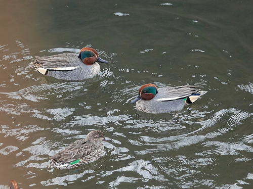 | イカルチドリ[2月24日] 1羽だけですがもう長い間います。 | コガモ[2月24日] どの♂もみんな綺麗な繁殖羽になりました。 | |