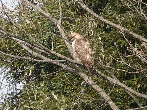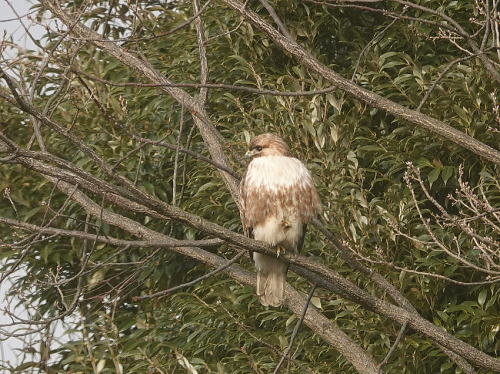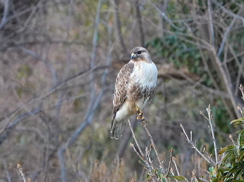 | ノスリ[2月4日] 今日は1段低い所に止まっていました。 | ノスリ[2月3日] 一番高い所から獲物はいないかと見張っていました。 | |