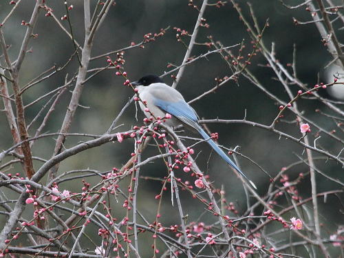 | オナガ[2月16日] 最近はこの付近を群れで飛び回っているようです。 | オナガ[2月16日] 梅の花には興味無さそうでした。 | |